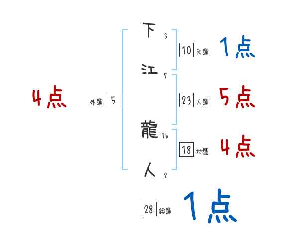 下江龍人さんの画数の鑑定結果