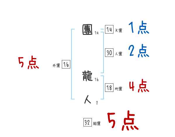 團龍人さんの画数の鑑定結果