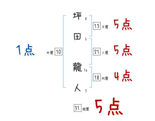 坪田龍人さんの画数の鑑定結果