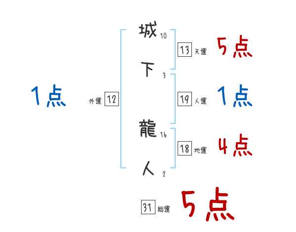 城下龍人さんの画数の鑑定結果