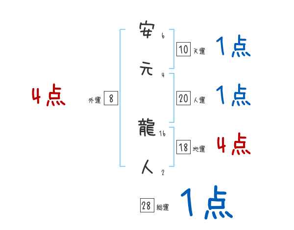 安元龍人さんの画数の鑑定結果
