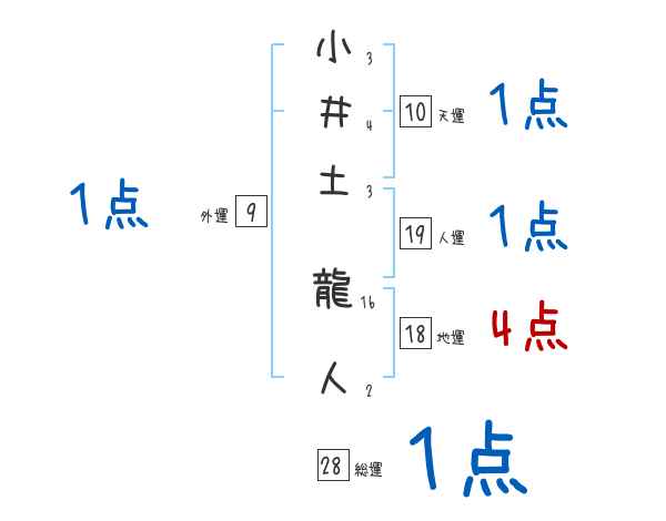 小井土龍人さんの画数の鑑定結果