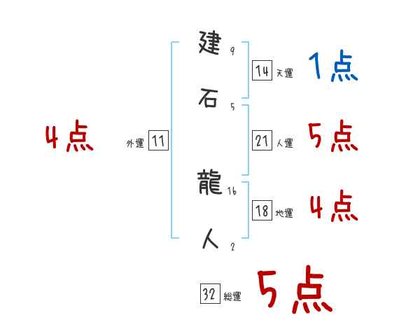 建石龍人さんの画数の鑑定結果