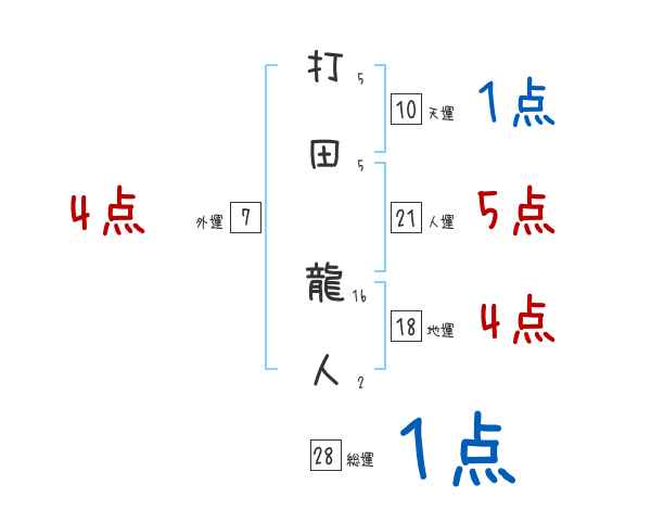 打田龍人さんの画数の鑑定結果