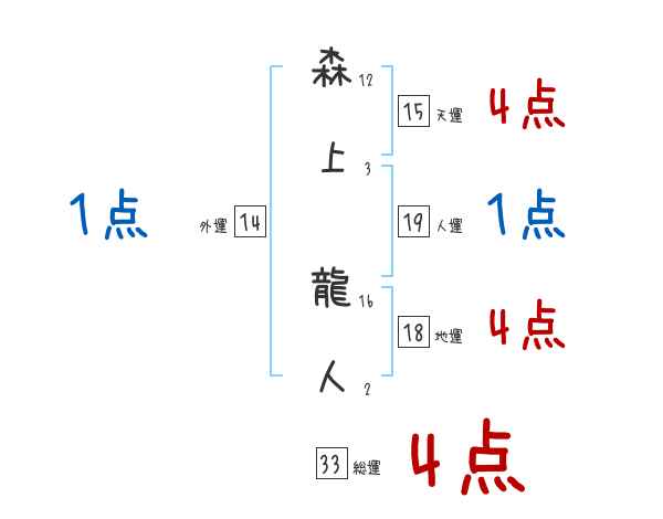 天運![]() | 森上龍人さんの天運は15画の4つ星!人徳があり出世する。順調に物事を進め円満な人生。 家系が持つ宿命的な運勢を表します。祖先から受け継いだ苗字ですので自分の力が及びません。家柄を象徴します。 |