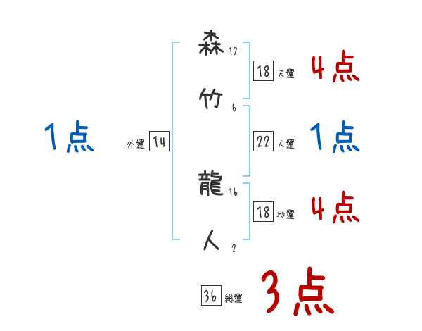 森竹龍人さんの画数の鑑定結果