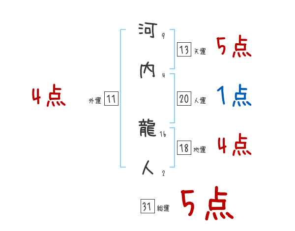 河内龍人さんの画数の鑑定結果