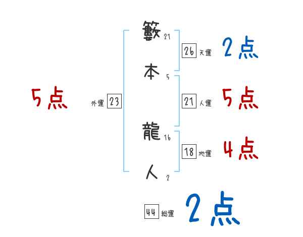 籔本龍人さんの画数の鑑定結果
