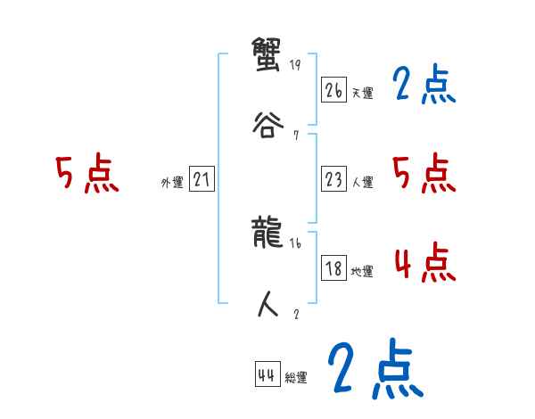 蟹谷龍人さんの画数の鑑定結果