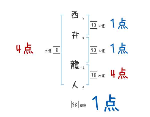 西井龍人さんの画数の鑑定結果