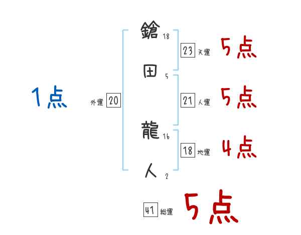 鎗田龍人さんの画数の鑑定結果