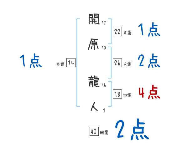 開原龍人さんの画数の鑑定結果