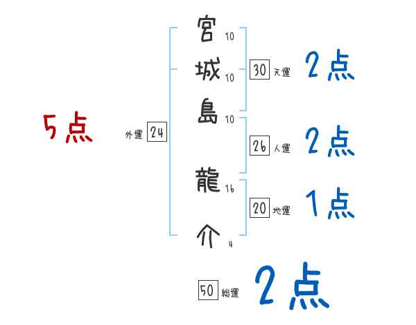 宮城島龍介さんの画数の鑑定結果