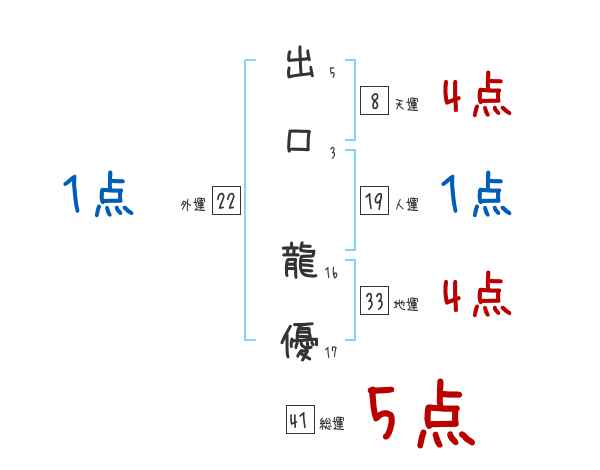 出口龍優さんの画数の鑑定結果