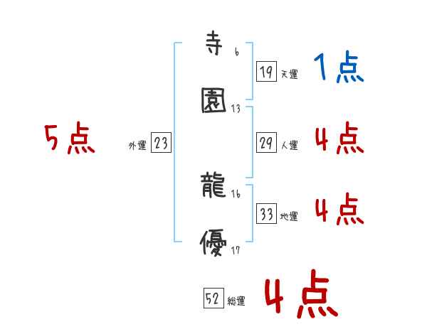 寺園龍優さんの画数の鑑定結果