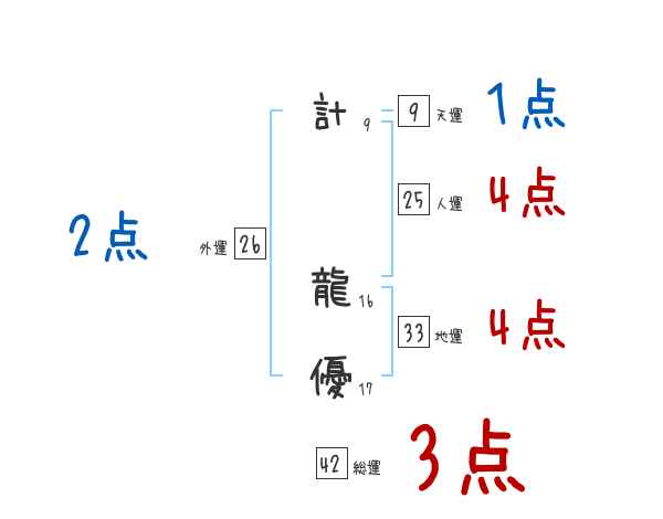 計龍優さんの画数の鑑定結果