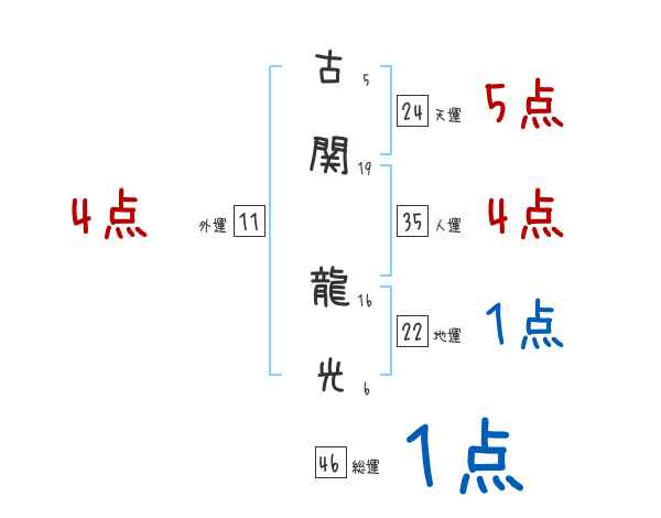 古関龍光さんの画数の鑑定結果