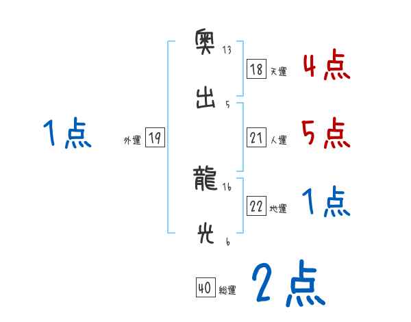 奥出龍光さんの画数の鑑定結果
