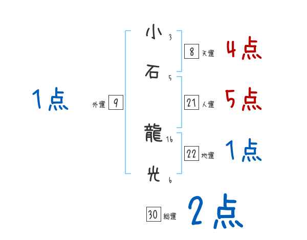 地運![]() | 小石龍光さんの地運は22画の1つ星!努力することが苦手ないっぽう手先が器用。芸術性にも優れる。 個性を表す基礎的な運勢です。性格形成や対人関係、行動力など家庭環境に影響されます。主に誕生してから20歳くらいまでの若年期の運勢を表します。 |