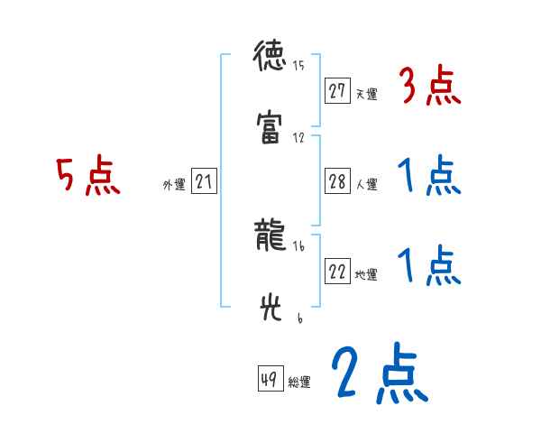 徳富龍光さんの画数の鑑定結果