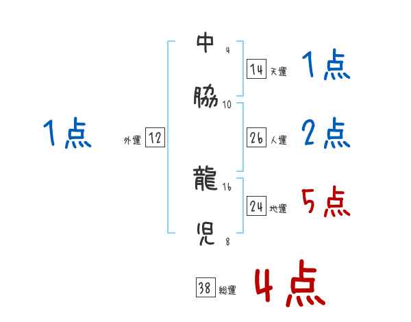中脇龍児さんの画数の鑑定結果