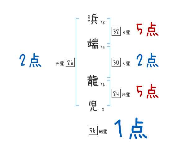 浜端龍児さんの画数の鑑定結果
