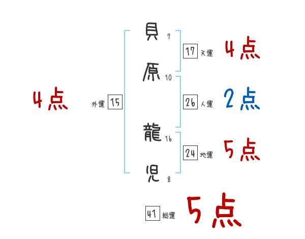 貝原龍児さんの画数の鑑定結果