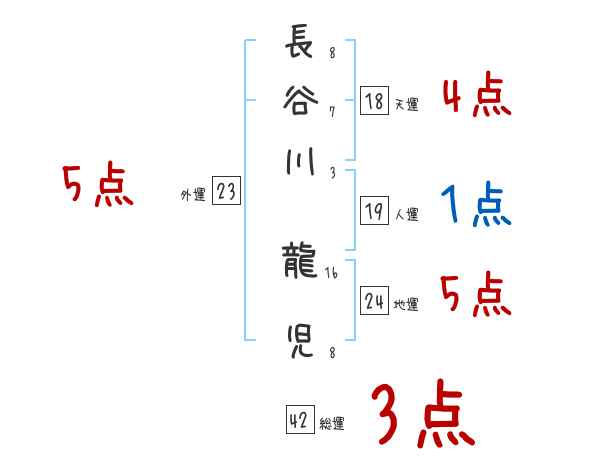 外運![]() | 長谷川龍児さんの外運は23画の5つ星!想像力に優れ活力がある。一代で成功し名誉を手に入れる。 生活面を象徴する運勢です。外部から受ける影響力を表し、結婚運、家庭運や職場、環境への順応性を表します。 |