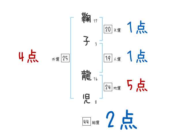 鞠子龍児さんの画数の鑑定結果
