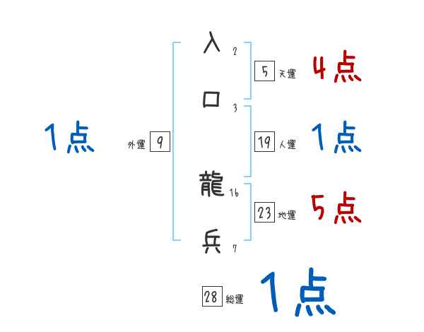 入口龍兵さんの画数の鑑定結果