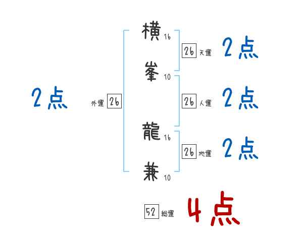 横峯龍兼さんの画数の鑑定結果