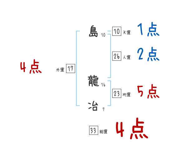 島龍冶さんの画数の鑑定結果