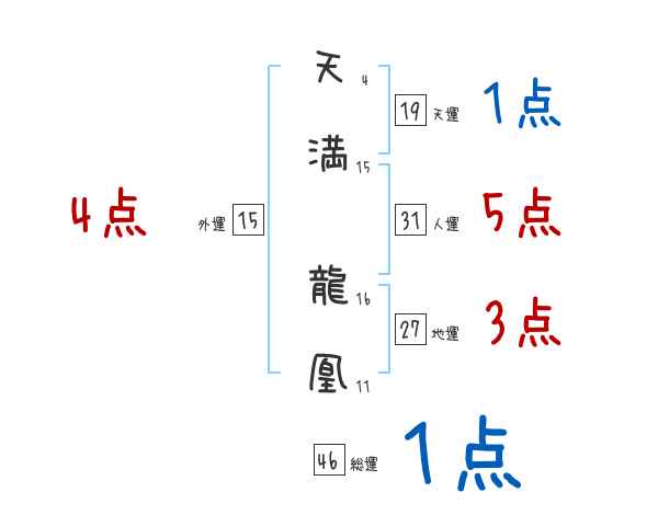 天運![]() | 天満龍凰さんの天運は19画の1つ星!優れた才能を持ちますが、協調性が足りないことも。周りの人と協力する事を意識しましょう。 家系が持つ宿命的な運勢を表します。祖先から受け継いだ苗字ですので自分の力が及びません。家柄を象徴します。 |