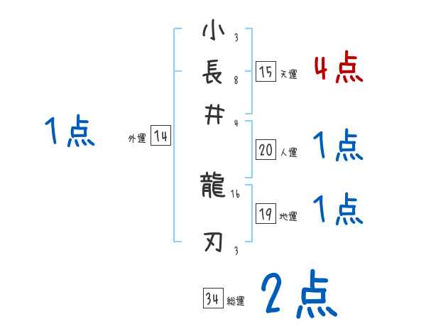 小長井龍刃さんの画数の鑑定結果