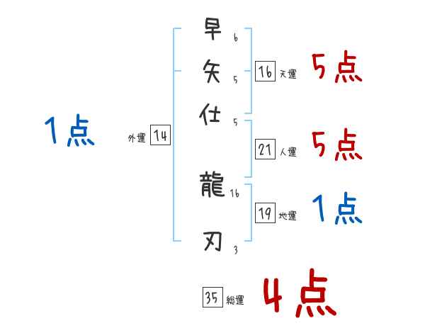 早矢仕龍刃さんの画数の鑑定結果