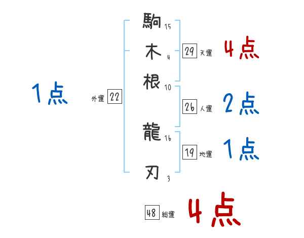 天運![]() | 駒木根龍刃さんの天運は29画の4つ星!完全主義で才能がある。厳格な心の持ち主。 家系が持つ宿命的な運勢を表します。祖先から受け継いだ苗字ですので自分の力が及びません。家柄を象徴します。 |