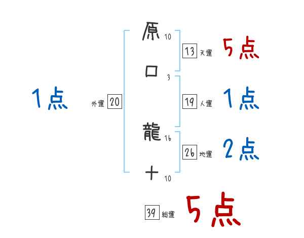 原口龍十さんの画数の鑑定結果