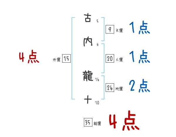 古内龍十さんの画数の鑑定結果