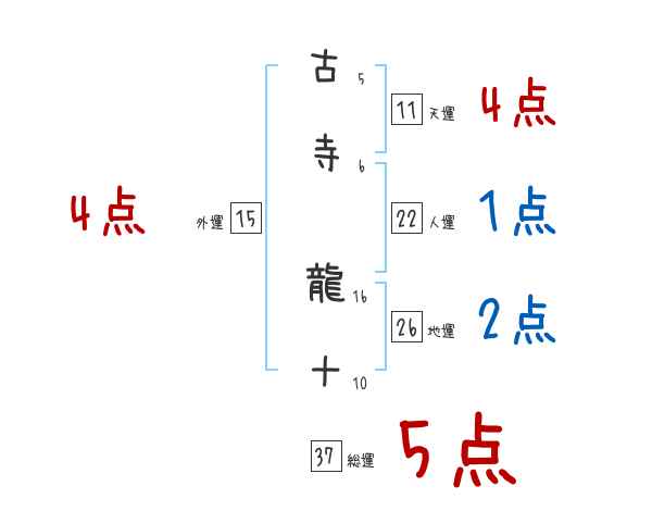 地運![]() | 古寺龍十さんの地運は26画の2つ星!波瀾万丈かも。信頼できる人を大事にしましょう。 個性を表す基礎的な運勢です。性格形成や対人関係、行動力など家庭環境に影響されます。主に誕生してから20歳くらいまでの若年期の運勢を表します。 |