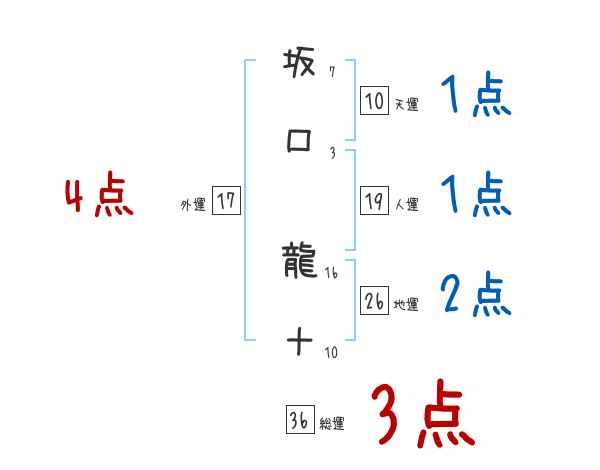 坂口龍十さんの画数の鑑定結果