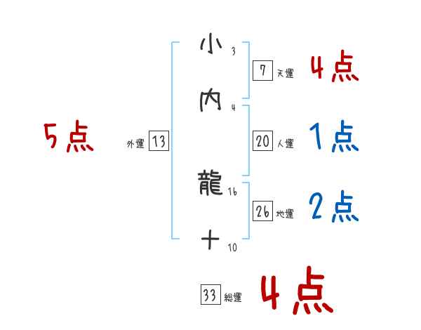 小内龍十さんの画数の鑑定結果