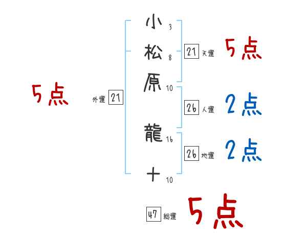 小松原龍十さんの画数の鑑定結果