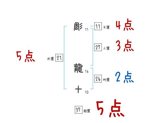 彫龍十さんの画数の鑑定結果