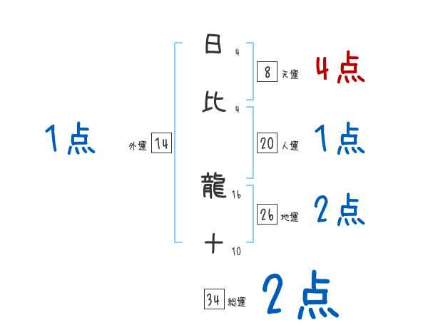 日比龍十さんの画数の鑑定結果