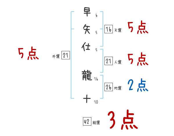 外運![]() | 早矢仕龍十さんの外運は21画の5つ星!統率力がある。独立し成功する。名誉を手に入れる。 生活面を象徴する運勢です。外部から受ける影響力を表し、結婚運、家庭運や職場、環境への順応性を表します。 |