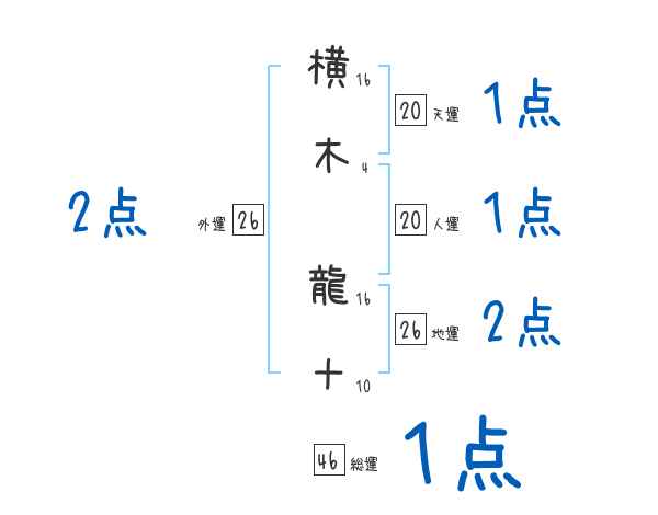 地運![]() | 横木龍十さんの地運は26画の2つ星!波瀾万丈かも。信頼できる人を大事にしましょう。 個性を表す基礎的な運勢です。性格形成や対人関係、行動力など家庭環境に影響されます。主に誕生してから20歳くらいまでの若年期の運勢を表します。 |