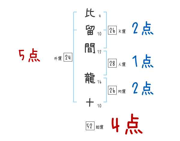 比留間龍十さんの画数の鑑定結果