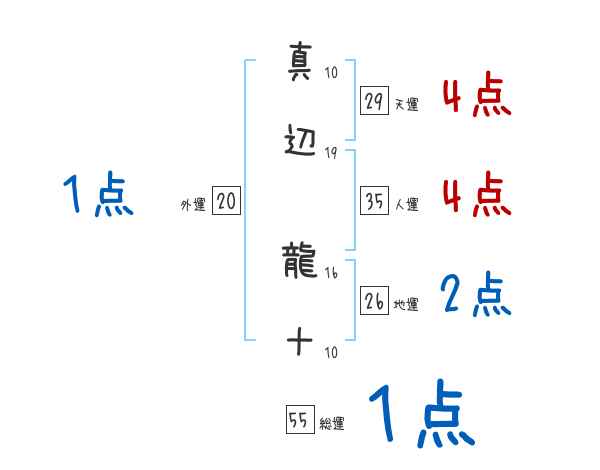 真辺龍十さんの画数の鑑定結果