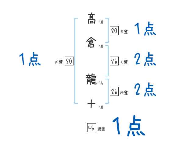 髙倉龍十さんの画数の鑑定結果