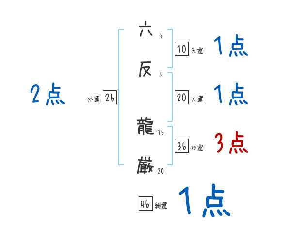 天運![]() | 六反龍厳さんの天運は10画の1つ星!不安を感じやすい傾向。ストレスを抱えないように注意しましょう。 家系が持つ宿命的な運勢を表します。祖先から受け継いだ苗字ですので自分の力が及びません。家柄を象徴します。 |